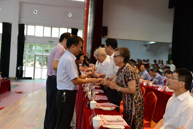 与会嘉宾:福建省人大常委会原副主仼郑义正(右五)、莆田市委书记林宝金(左五)、福建省委统战部副部长陈飞(右四)、莆田市政协主席林庆生(左三)、莆田市委付书记程强(右二)、侨雄集团主席许阿琼奖学委员会会长许奇锋(左四)等。