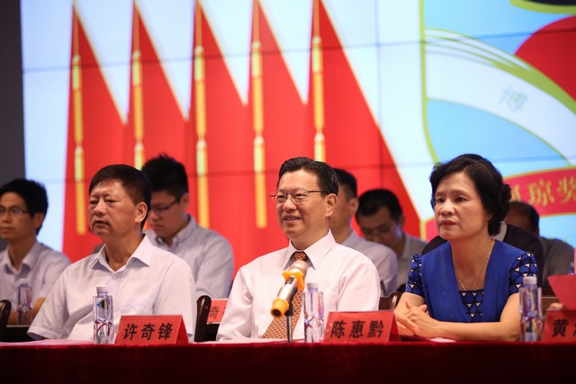 市政协主席林庆生(左)、许阿琼奖学委员会会长许奇锋(中)、市政府陈慧黔副市长(右)